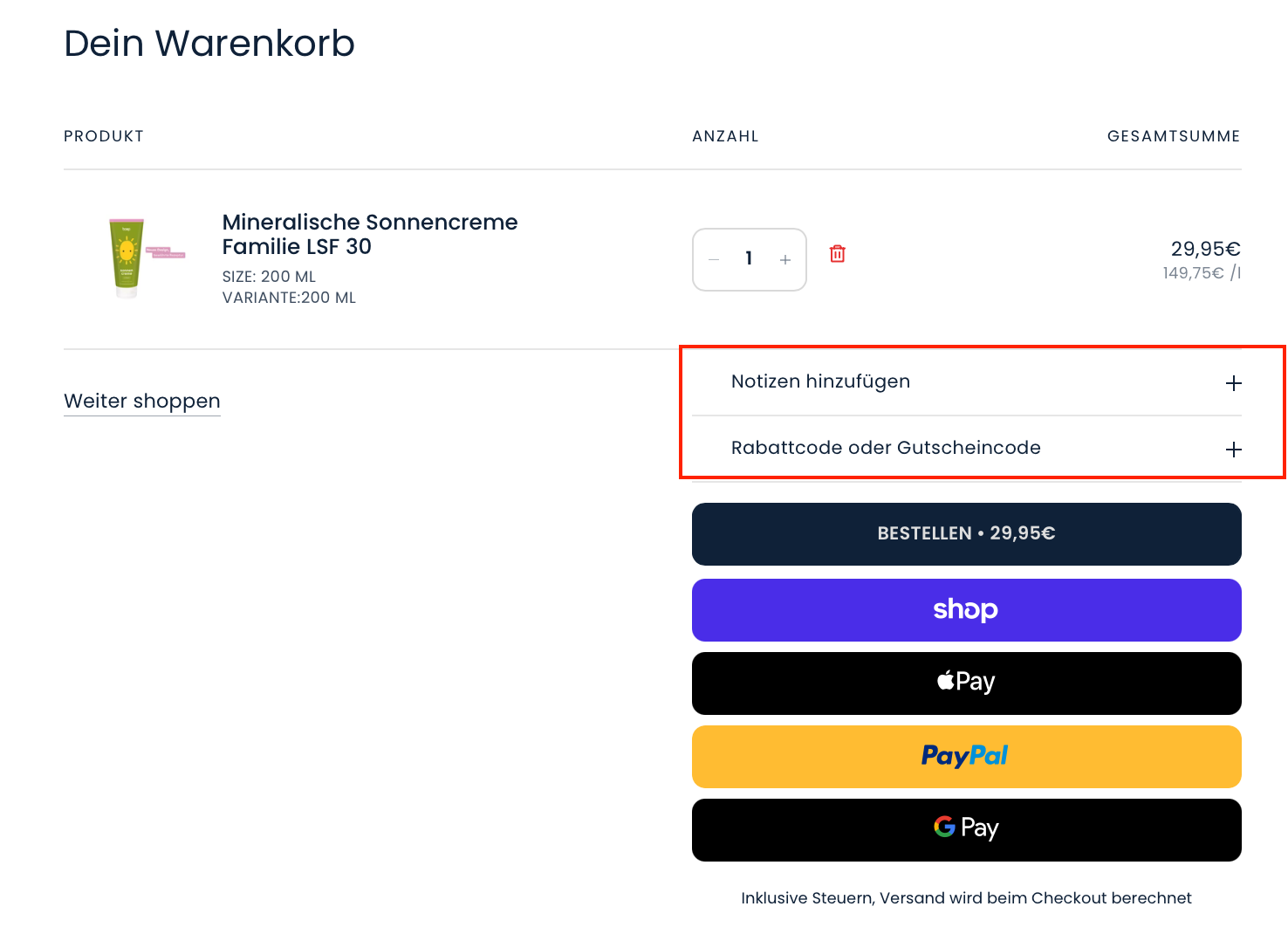 Dazu ist es nötig, dass sich mindestens ein Produkt im Warenkorb befindet.